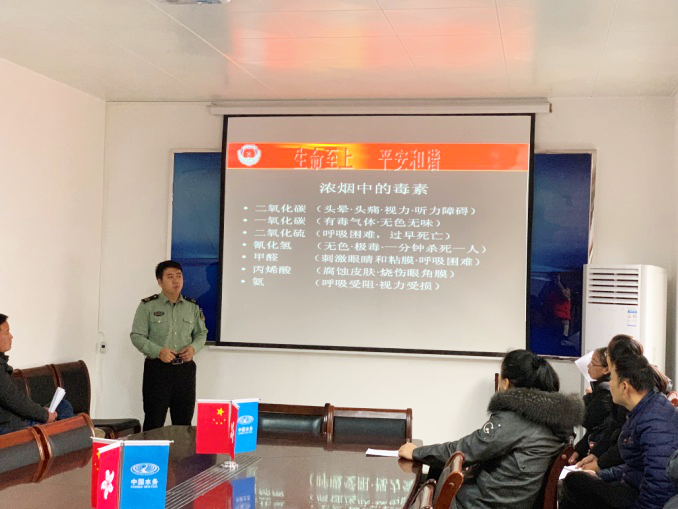 講座中,趙玉龍警官引導(dǎo)員工回顧了全國各地發(fā)生的多起火災(zāi)事故,展示了火災(zāi)發(fā)生后的嚴(yán)重后果,講解發(fā)生火災(zāi)后的安全疏散與逃生知識(shí)。他提醒在場(chǎng)的每個(gè)人,關(guān)注身邊時(shí)刻存在著的煤氣泄漏、電線老化等安全隱患。趙警官詳細(xì)講述了在意外發(fā)生前應(yīng)該如何進(jìn)行預(yù)防;當(dāng)意想不到的災(zāi)難發(fā)生時(shí),應(yīng)如何進(jìn)行自救。最后,還向大家講解了滅火器械的正確使用方法。