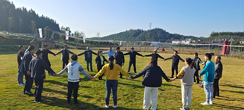 游戲開始前,主持人提問,如果全體人員從凌亂分散的狀態,迅速以一個人為中心點圍成一個標準的圓圈,需要多少時間?有人估計說30秒、有人估計說10秒······主持人便以10秒為目標,指導大家快速變圈。結果出人意料,大家只用5秒時間即圓滿完成了任務。這一實踐,讓人們深刻感受了團隊作戰時齊心協力的力量,也感受了突破潛能的振奮人心。