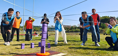 關于協作互助,“長勺喂湯”的故事可謂廣為流傳。在這次團建活動中,全體人員開展了一項比“長勺喂湯”難度更大的游戲——協力筑塔,即多人以軟繩同時控制一個吊鉤,將一塊塊積木搭建成指定的塔型。活動中,各小組人員齊心協作,細心操縱,出色完成了任務。